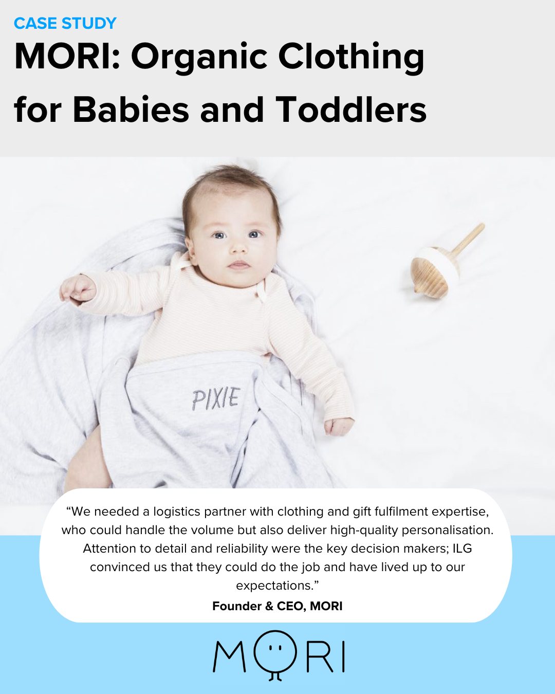 Case Study! đź’™ Founded in London in 2015, MORI creates baby and toddler clothing made from high-quality, sustainably sourced materials. As demand for personalised gifting grew, MORI needed a fulfilment partner that could scale without compromising on quality. ILG partnered with MORI to deliver expert clothing logistics, embroidery and gift fulfilment – handling every personalised order with precision and care. Together, we’re enabling MORI to scale personalised gifting while keeping customer experience front and centre. ✨